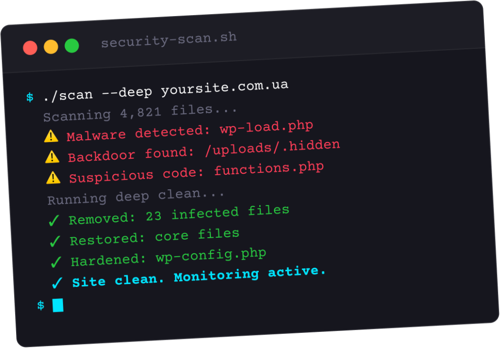 Комплексний захист вашого WordPress-сайту — від разового очищення до постійного моніторингу.